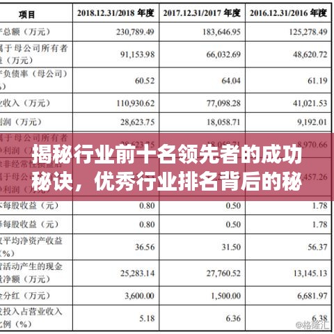 在当今竞争激烈的商业环境中,能够跻身行业前列的企业无疑是各自领域的佼佼者,本文将为您揭示优秀行业排名前十名的共同特点,探寻他们成功的秘诀。